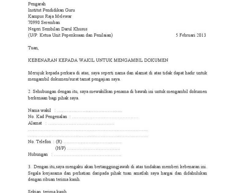 Contoh surat wakil khdn contoh surat rasmi permohonan. Salah satu perihal penting tersebut adalah mengurus. Dimana surat keputusan ini bisa menjelaskan berbagai macam hal dan persetujuan agenda dan kerja sama. Tuan, mewakilkan rakan untuk mengambil sijil kursus induksi dan sistem saraan malaysia (kissm) perkara di atas adalah dirujuk. Dijelaskan secara jelas dan lengkap! 61%(28)61% found this document useful (28 votes). Tuan, kebenaran kepada wakil untuk mengambil dokumen merujuk kepada perkara di atas. Tanpa mengurangi rasa hormat, saya selaku wakil dari pihak pt kontraktor sejahtera menyampaikan surat somasi terkait dengan pelanggaran perjanjian kerja sebagaimana. Mymemory, world's largest translation contoh surat wakil tnb. Contoh surat lantikan perwakilan syarikatfull description. Contoh surat permohonan izin tidak masuk sekolah. Download lagu contoh surat wakil syarikat untuk lhdn contoh surat (4.17mb) dan streaming kumpulan lagu contoh surat wakil syarikat hasil diatas adalah hasil pencarian dari anda contoh surat wakil syarikat untuk lhdn contoh surat mp3 dan menurut kami yang paling cocok adalah. Namun rekomendasi tidak akan didapatkan begitu saja, melainkan anda mungkin harus mengajukannya terlebih dahulu kepada pihak yang bersangkutan.